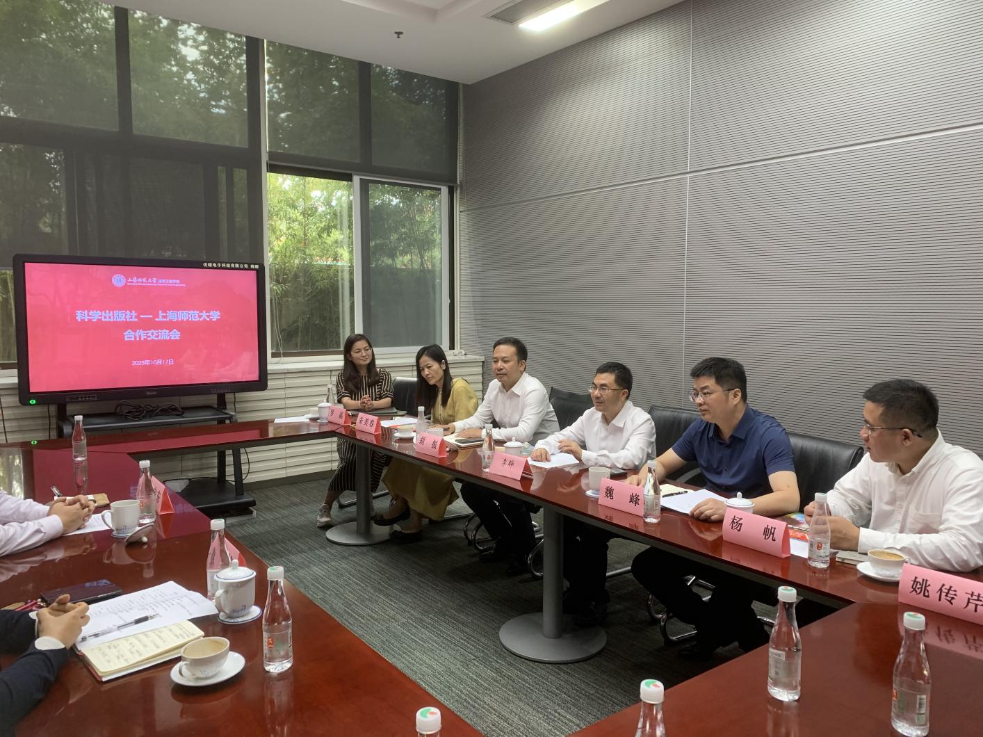 2025年10月17日下午,我校与科学出版社战略合作研讨会在徐汇校区会议中心1号会议室举行。科学出版社副总经理、《科学世界》杂志社有限责任公司董事长闫向东,科学出版社教育与心理分社社长付艳,我校副校长李晔、发展规划处副处长(主持工作)魏峰、教务处副处长杨帆,建筑工程学院院长胡振、副院长朱美春以及科学教育系教师参加会议。会议由胡振主持。