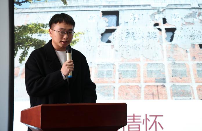在小组分享环节,学前教育学院的顾珠琴首先作为获奖学生代表发言。她分享了团队如何选择红船、纪念碑与纪念堂三个意象,并通过一条“红丝带”将其串联,构建起动态的红色叙事。她表示,这次创作是对“不忘初心、牢记使命”的真诚实践,让抽象精神成为可触可感的立体画卷。