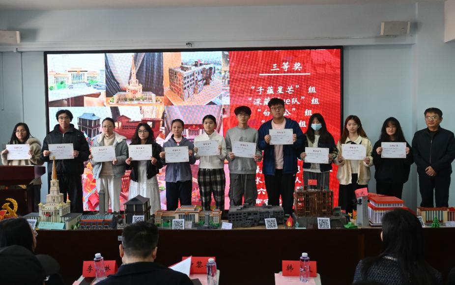 活动伊始,一段精彩的视频带领与会人员回顾了比赛全程。在精心制作模型的过程中,各参赛小组充分展现了协同合作的团队精神、争分夺秒的拼搏风采和精益求精的认真态度,参赛学子以红色经典建筑为创作蓝本,查阅史料、走访调研、解析结构、设计尺寸,将革命先辈的奋斗故事与峥嵘岁月融入结构搭建与细节雕琢。作品精准还原了红色建筑历史风貌,让红色精神在新时代焕发艺术活力。